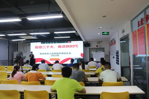 为进一步深入学习贯彻习近平新时代中国特色社会主义思想,近日,由广东省东莞市市总工会主办、大朗镇总工会协办的“中国梦·劳动美——喜迎二十大,建功新时代”主题党课走进公司成员企业广东以诺通讯有限公司。