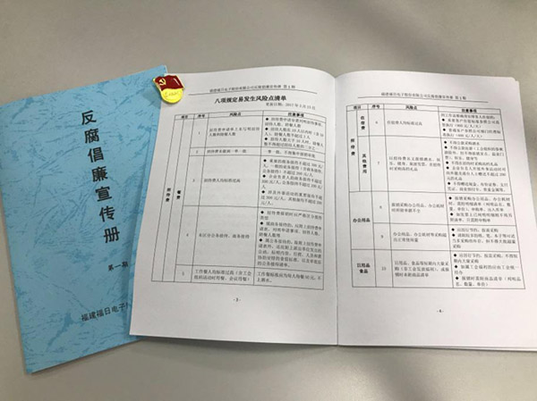 结合“两学一做”学习教育常态化制度化,2017年上半年以来,星空(中国)党委、纪委多形式多种渠道深入开展全面从严治党教育。一是组织收看专题教育片《永远在路上》,利用鲜活的案例教育和引导广大党员防微杜渐、警钟长鸣;二是利用公司廉洁教育微信群平台,不定期向企业中层以上领导干部及党员推送教育警示文章,开展微党课教育,提醒督促领导干部及党员以身作则,严守“廉洁关”;三是在重要节假日等关键节点下发通知文件,持续重申中央八项规定精神和廉洁从业等有关纪律要求,及时开展自查自纠,廉洁过节;四是编印《反腐倡廉宣传册》,涵盖遵守八项规定风险点、廉洁从业应知应会知识及行为规范、违纪案件警示录等内容,使廉洁教育知识随时可学可查,让反腐倡廉真正融入广大党员、干部、职工日常工作、生活。