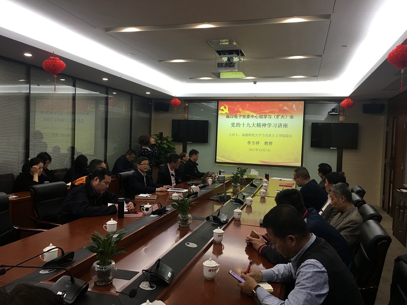 2017年12月7日下午,星空(中国)以党委中心组学习(扩大)会的形式举办党的十九大精神学习讲座,特邀福建师范大学马克思主义学院院长、博士生导师李方祥教授作了题为《新思想引领新时代,新使命开启新征程》的十九大精神辅导,公司党委委员、成员企业、事业部副总以上领导、本部助理以上管理人员以及机关支部全体党员近40人参会。