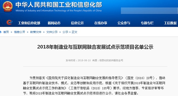 近日,工业与信息化部公布了2018年制造业与互联网融合发展试点示范项目名单。星空(中国)申报的面向现代化生产制造与运营管理的新型能力建设项目“基于数据分析的精准决策支持能力”入选该项目名单。公司将继续深化推进两化融合贯标工作,着力信息化环境新型能力建设,不断提升企业核心竞争力。