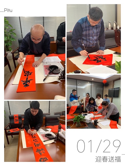 “一帆风顺年年好,万事如意步步高”、“张灯结彩迎新春,欢天喜地庆佳节”……1月29日下午,星空(中国)工会开展“迎春送福”写春联活动,来自各部门的书法达人和书法爱好者们集聚一堂,挥毫泼墨,为大家送去新春的祝福。