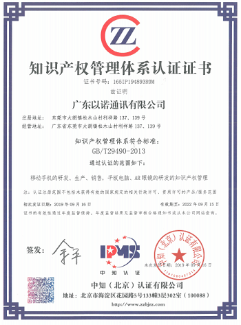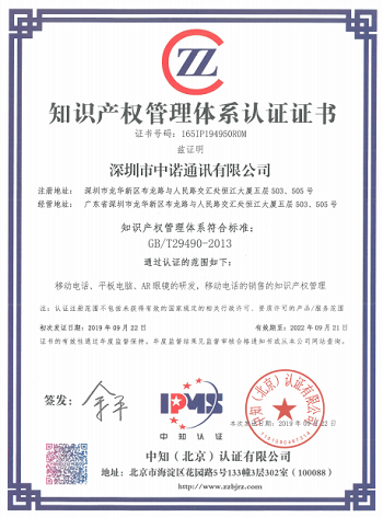 为做好知识产权管理体系认证工作,中诺通讯、以诺通讯由公司总经办牵头,成立知识产权贯标和实施小组,小组成员由公共事务中心、技术创新中心、研发中心、制造中心、供应链中心等部门相关负责人组成;先后在东莞、北京和西安开展知识产权培训,进一步提升员工知识产权保护意识,明确推行实施GB/T29490-2013《企业知识产权管理规范》的价值与意义。
