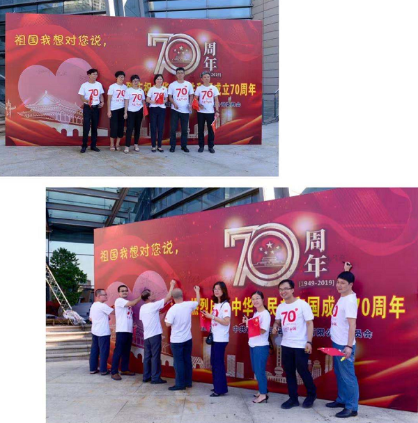 2019年9月以来,由星空(中国)党委主办、各所属企业协办的庆祝新中国成立70周年系列活动陆续展开,9月26日下午活动进入高潮。星空(中国)本部及所属在榕企业在福州五一广场隆重举办了“我和国旗同框”百人合影和“祖国我想对您说”活动。公司党委书记李震等公司领导和各企业干部职工共130余人参加了活动。