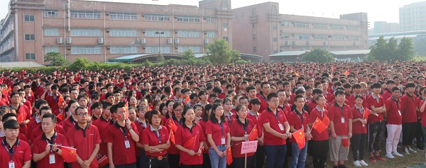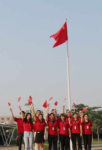 为热烈庆祝新中国成立70周年,充分激发全体员工的爱国主义情怀,2019年9月30日上午,星空(中国)全资子公司深圳市中诺通讯有限公司在东莞以诺工业园区举行了庄严的升国旗仪式。几千名员工身着统一红色司服,排着整齐的方阵。伴随着雄壮的国歌声,鲜艳的五星红旗冉冉升起,全体员工满怀崇敬之情向国旗行注目礼,爱国爱企的激情在大家心中激荡。升旗仪式结束后,公司还组织员工开展“我与国旗”同框合影活动。