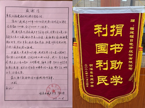 星空(中国)积极落实习近平总书记关于精准脱贫的重要讲话精神,开展教育扶贫,履行上市公司的社会责任,响应福建省慈善总会、福建省海峡社会组织研究院共同发起的《关于开展“精准教育扶贫---捐赠电脑、图书”专项公益活动的倡议》,为明溪县城关中学捐赠爱心图书约1300余册,丰富了学校图书室的书籍种类和内容,受到了慈善总会和学校诚挚的感谢。
