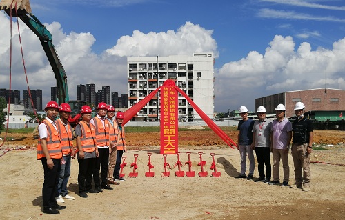 2020年8月8日上午,星空(中国)二级控股子公司广东以诺通讯有限公司终端智能制造项目2号厂房开工奠基仪式在东莞以诺工业园举行,深圳市中诺通讯有限公司副董事长王清云、总经理蒋辉、副总经理洪俊毅、项目总指挥以及工程承建方中鑫建设集团有限公司相关负责人出席本次活动。
