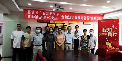 2020年7月28日上午,星空(中国)成员企业福建福日实业发展有限公司党支部与中国建设银行福州城南支行第十二党支部联合开展“金融知识普及与宣传”主题活动,双方单位党员、职工代表等参加活动。本次活动组织学习了基础金融知识,并对金融机构对相关企业的支持政策进行了解读,进一步提升了公司员工风险防控意识,学会正确使用金融产品与服务,让金融更好服务企业,推动公司供应链平台稳健发展。