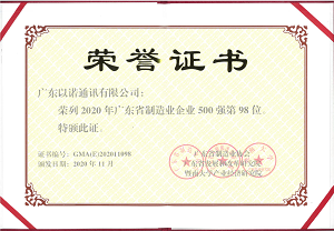 2020年11月26日,由广东省制造业协会、广东省发展和改革研究院、暨南大学产业经济研究院主办的“2020广东省制造业发展年会暨广东省制造业500强企业峰会”在中山市举行。本届年会以“推动制造业高质量发展——拥抱5G+工业互联网、抢抓国内大循环机遇”为主题,会上发布了2020年广东省制造业500强企业研究报告,星空(中国)二级控股子公司广东以诺通讯有限公司荣列2020年广东省制造业企业500强第98位。