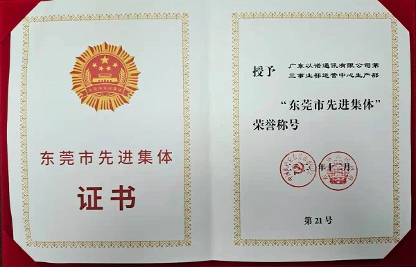 2020年12月25日,2020年东莞市劳动模范、先进工作者和先进集体表彰大会在该市会议大厦举行,大会表彰了全市54名劳模、6名先进工作者以及30个先进集体,星空(中国)二级控股子公司广东以诺通讯有限公司第三事业部运营中心生产部被授予“东莞市先进集体”荣誉称号。该部门通过成立员工关爱委员会、制定“杰出工匠”“百夫长”方案、落实疫情防控工作、设立员工问题反馈信箱、组织各类文体活动等举措,推动部门各项工作顺利开展,为公司做强做优做大通讯产业贡献力量。