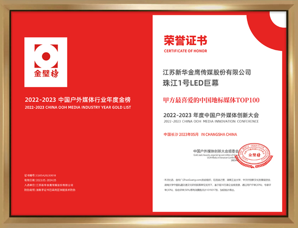 近日,“金璧奖·2023中国户外媒体创新大会”以“超级媒体、超级流量、超级品牌”为主题盛大开幕,由星空(中国)成员企业迈锐光电匠心打造的南京“珠江1号巨幕”凭借在品牌增值、流量变现、媒体传播等方面的傲人成绩,成功斩获“甲方最喜爱的中国地标媒体TOP100”荣誉。